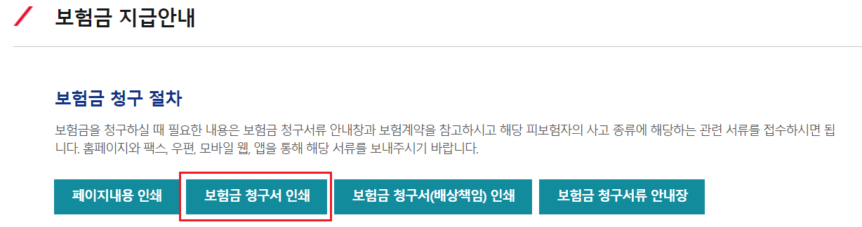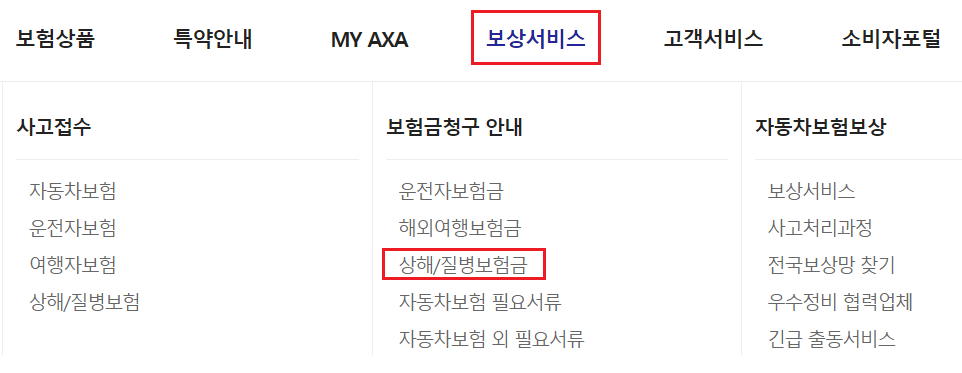 ㄴ AXA손해보험 공식 사이트 -> 보상서비스 카테고리 -> 보험금청구 안내 -> 상해/질병보험금 -> 보험금청구 인쇄