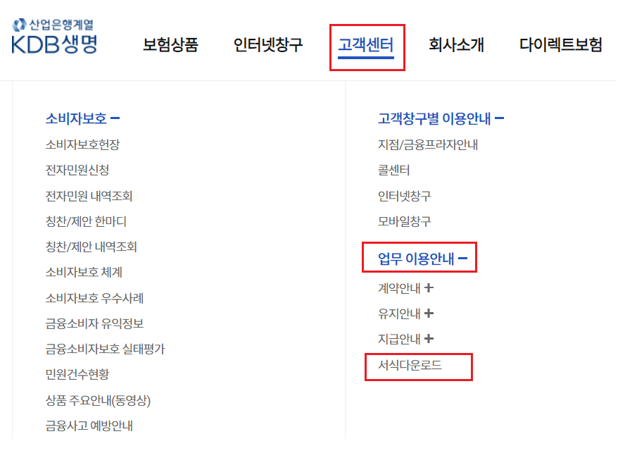 ㄴ KDB생명 사이트 -> 고객센터 -> 업무이용안내 (서식다운로드) -> 보험금청구서&개인신용정보처리동의서 다운로드