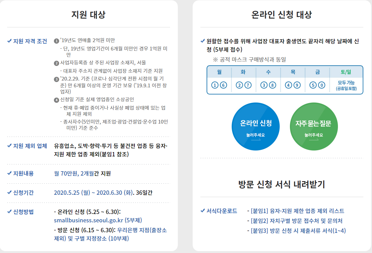 임대료와 인건비를 활용할 수 있는 월 70만원씩 2개월간 현금으로 지원하는 제도입니다.